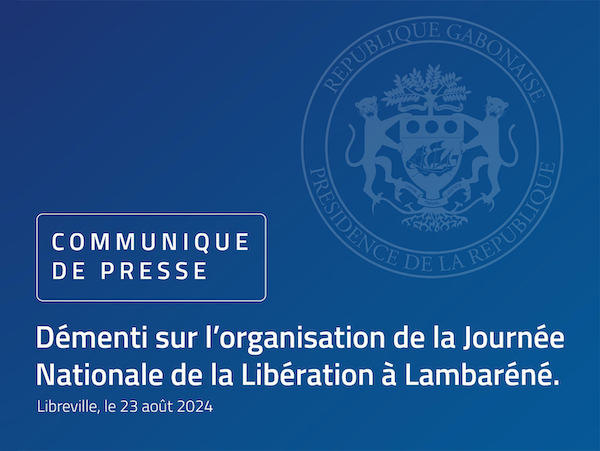 La Présidence de la République à travers ce communiqué tient à préciser que la 1ère édition de la journée nationale de la libération instituée le 30 août de chaque année aura bel et bien lieu à Libreville.