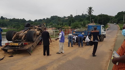 Un terrible accident s’est produit ce mardi 30 juin, en fin d’après-midi, sur le pont d’Adouma de Lambaréné, capitale provinciale du Moyen-Ogooué. Un canter (TM) transportant du sable s’est retrouvé quatre roues regardant le ciel après avoir "évité un taxi stationné en zone dite interdite". Pendant le drame, le chauffeur de taxi s’est enfui.