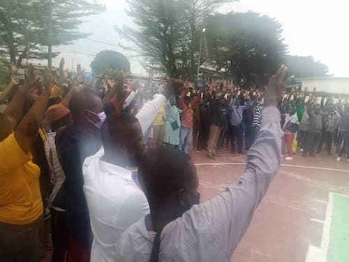 « L’assemblée générale s’est prononcée pour le niet. Non à la vaccination obligatoire. En se référant aux textes internationaux, pour qu’une expérience médicale se fasse sur un individu, il faudrait qu’il y ait le libre consentement. Donc, il faudrait que les enseignants se présentent librement pour ceux qui voudront se faire vacciner, mais nous disons non à la vaccination obligatoire, car nous voyons le gouvernement venir » a-t-il indiqué au nom de tous les syndicalistes.