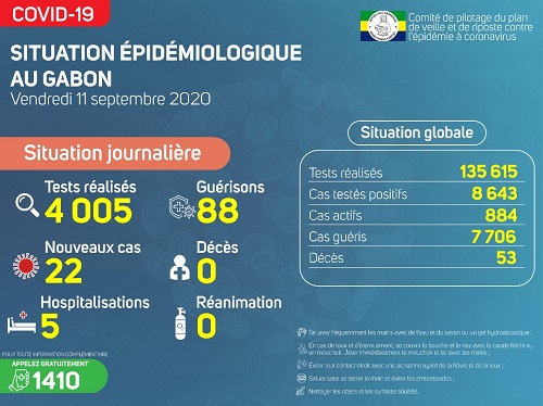 GABON : Situation épidémiologique du vendredi 11septembre 2020