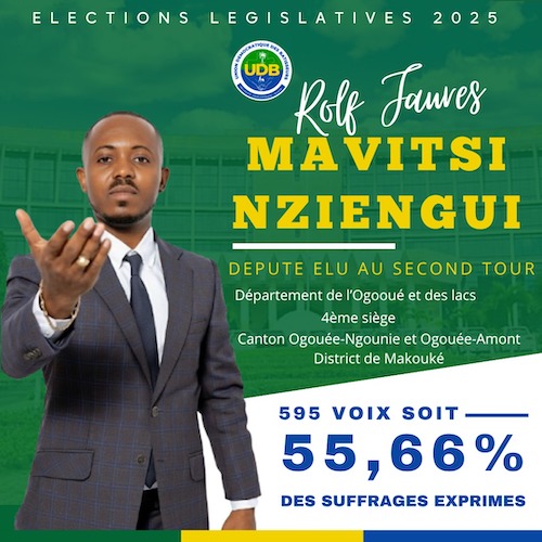 Je suis profondément honoré de la responsabilité que vous m’avez confiée. Et je promets de rester fidèle à mes engagements, à vos attentes et à cette confiance que vous m’avez témoignée. Ce n’est que le début : le vrai travail commence maintenant ; et je le ferai avec vous, pour vous et grâce à vous. Merci énormément à vous tous. Cette victoire est la nôtre. Avec gratitude et engagement, Honorable Mavitsi Nziengui Rolf Jaures ‘’, a – t – il écrit.