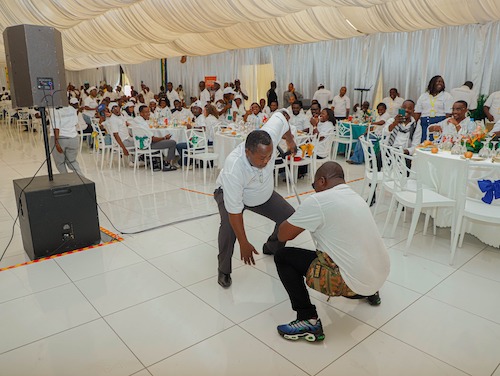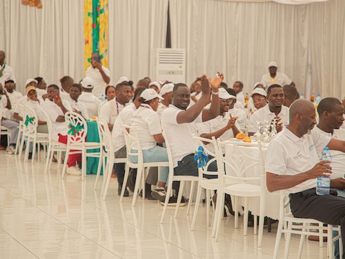 Dans une salle spacieuse et soigneusement décorée,les tables des convives présentaient toute la solennité du jour.Il faut dire que le comité d’organisation n’a pas fait dans la Chaque convive était à son aise et le climatiseur distillait une fraîcheur adaptée au soleil tropical qui sévissait à l’extérieur de la salle.