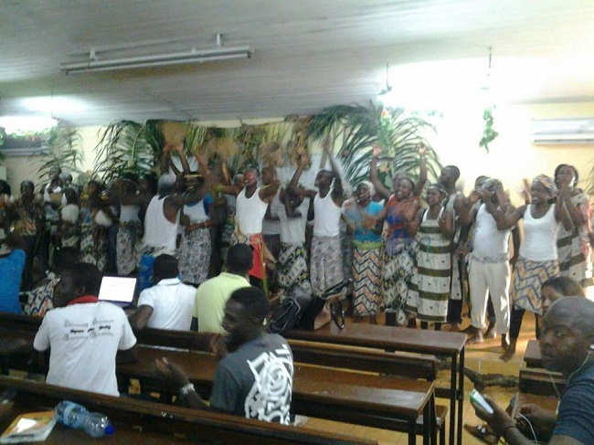 « Retour aux sources », c’est le thème choisi par le département d’Histoire et de Géographie de l’Ecole normale supérieure (ENS) pour animer sa Journée culturelle. Les élèves professeurs du département ont été les principaux acteurs de la scène de leur amphithéâtre. A la demande de Rufin Didzambou, enseignant à l’ENS, les élèves professeurs ont réalisé une pièce, symbole du retour aux sources.