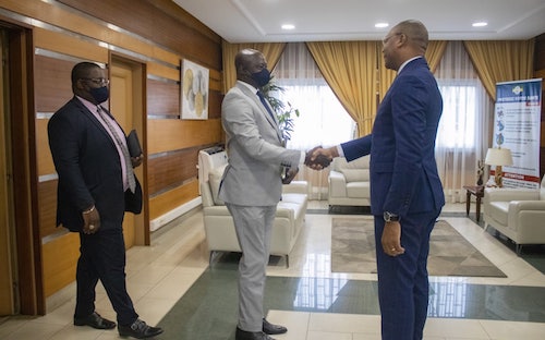 Libreville, le 02 juin 2022 – Le Ministre de la Santé et des Affaires Sociales, Dr. Guy Patrick Obiang Ndong assisté de son Ministre Délégué, Madame Justine Libimbi épouse Mihindou, a reçu en audience ce jour, Monsieur Loïse Tamalgo, Délégué général du groupe Eramet en Afrique.