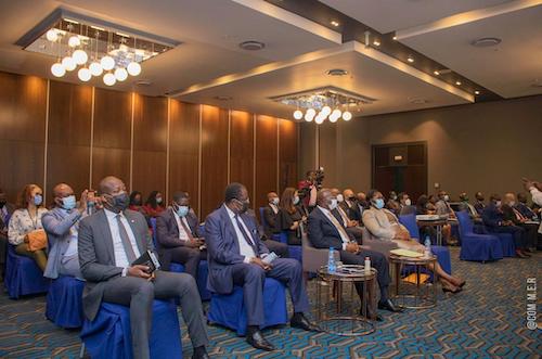 Le ministre de l’Economie et de la Relance, Madame Nicole Jeanine Lydie ROBOTY épse MBOU, a procédé ce jeudi 27 mai 2021 à l’Hôtel Radisson, au lancement de l’opération d’emprunt obligataire par appel public à l’épargne sur le marché financier de la sous-région dénommée « EOG 6% Net 2021-2026 ».
