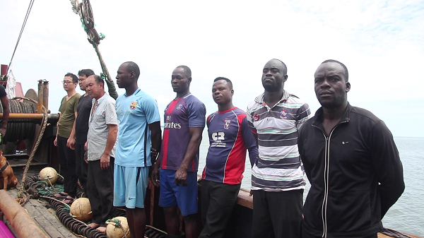 Informée de la situation, la patronne du Ministère de la Pêche et de la Mer s’est rendue sur les lieux ce dimanche. L’équipage appréhendé est constitué de huit membres dont trois Chinois et cinq Ghanéens : « ils étaient en pleine pêche dans le parc marin de Mbanié… », explique le Conservateur. Le bateau n’a pas d’autorisation de pêche, ce qui est une infraction réprimandée par la Loi gabonaise. La procédure permettant d’évaluer l’importance des captures suit son cours.