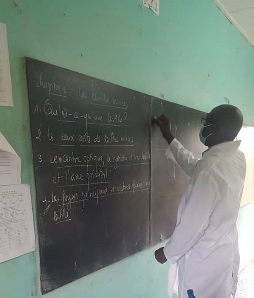 La rentrée des classes est effective au Lycée Jean Arsène Bouguendza Le proviseur de cet établissement, Dieudonné Boukala mise sur l’obligation des résultats. Il ne veut pas perdre du temps et en profite pour donner son premier cours de l’année. Mais bien avant, il a été question pour lui, de sensibiliser les apprenants sur la question de la pandémie à coronavirus. Il a rappelé aux uns et aux autres la nécessité du « port du masque obligatoire par les professeurs et les élèves, de la distanciation physique à respecter ». Il a fait savoir également présence des gels hydro-alcooliques et une cuve pour le lavage des mains.