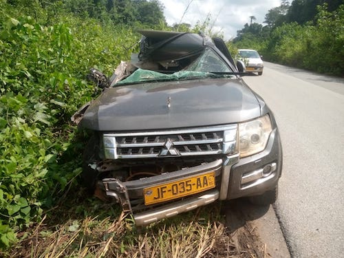 Le véhicule Pajero dans lequel se trouvaient les 3 victimes va frôler un grumier en stationnement entre Guidouma/Moulandoufouala à plus de 60 km de Mouila. La fatigue ressentie par le chauffeur serait à l’origine de ce manquement de vigilance.