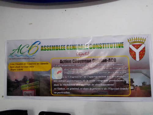 Nouvellement constitué, le mouvement associatif dénommé "Action Citoyenne Ogivine, en abrégé ACO", a tenu son assemblée générale constitutive ce 1er Août 2024, à la chambre de commerce du Gabon, en présence de plusieurs cadres et l’élite de l’Ogooué-Ivindo.