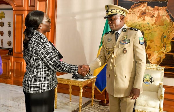 Libreville, le 25 Septembre 2023-Le Général Brice Clotaire Oligui Nguema, Président de la Transition, Chef de l’Etat a reçu ce jour en audience mesdames Solange Marthe Guiakie et Patricia Djipano épouse Mouloungui respectivement ministre du Travail et de la Lutte contre le Chômage et ministre du Commerce, des PME/PMI chargé des Activités Génératrices de Revenus.
