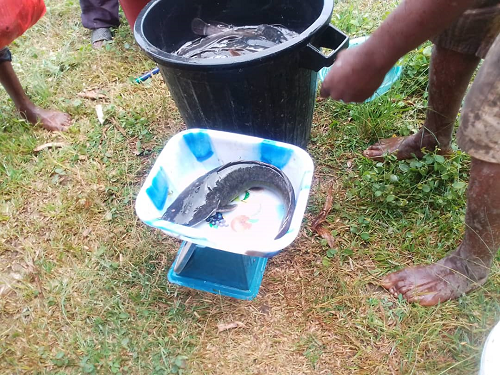Après six mois d’élevage, les femmes de l’association Mouetse ont procédé, sous les regards témoins de certaines autorités telles que le Directeur Provincial de la Pêche, l’association a procédé au premier jet de pêche et de vente des silures et tilapias qui avaient déjà atteint leur maturité. "Ce fut un immense plaisir et une expérience satisfaisante d’avoir contribué et participé à cette belle expérience qui est l’élevage de poissons hors sol" témoigne Sabine Marcelle Matchiendy.