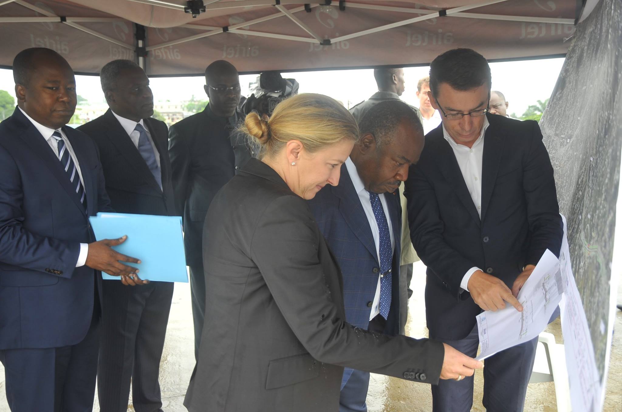 At PK12, Gabon’s Head of states discussed the advancement of the road with the responsible for the building of the 2 ways road. The road rehabilitation concerns the increase of the road as well as the creation of new road infrastructure to facilitate the traffic.