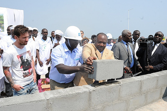 Port – gentil, le 18 juillet 2015 – Le Président de la République gabonaise Ali Bongo Ondimba a procédé ce samedi à la pose de la première pierre lançant la construction du stade de Port-Gentil où se disputeront une partie des matchs de la Coupe d’Afrique des Nations édition 2017.