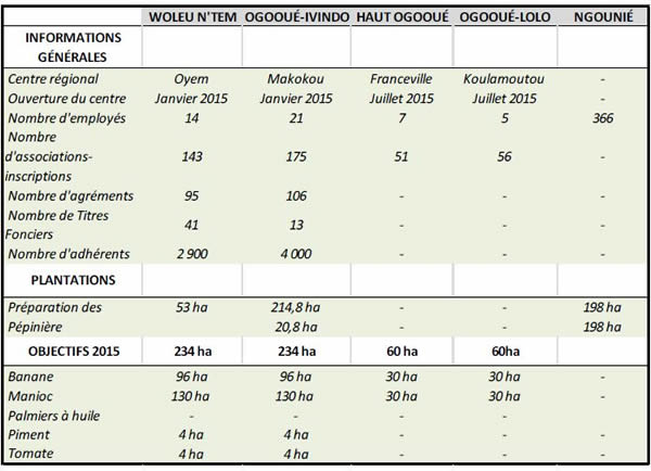 - 4 centres régionaux ouverts (Makokou, Oyem, Koulamoutou et Franceville)