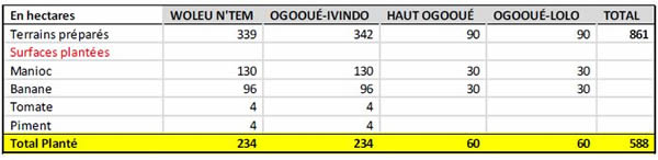 - 267 hectares de terrains déjà préparés (Makokou, Oyem et Ndendé)