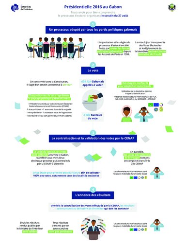 Ce samedi 27 août 2016, 628 124 Gabonais sont appelés à voter dans 2 580 bureaux de vote répartis à travers le pays. En ce jour de scrutin, le Ministère de l’Intérieur, de la (...)
