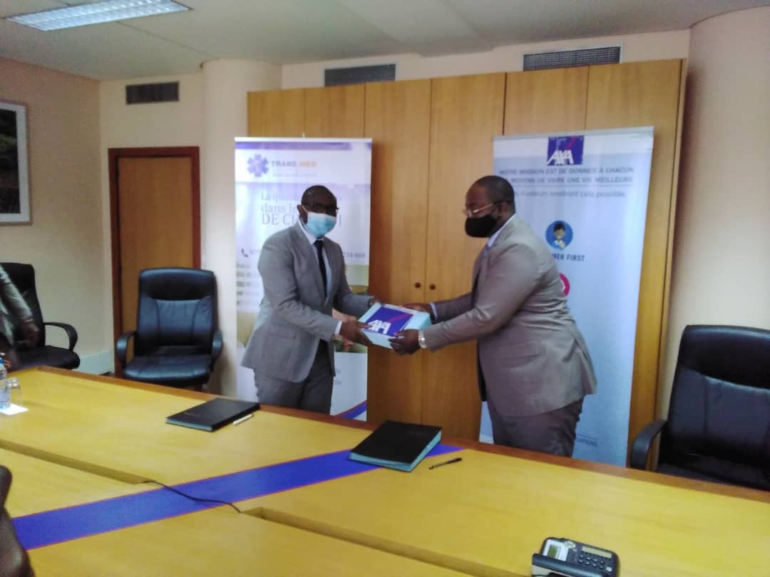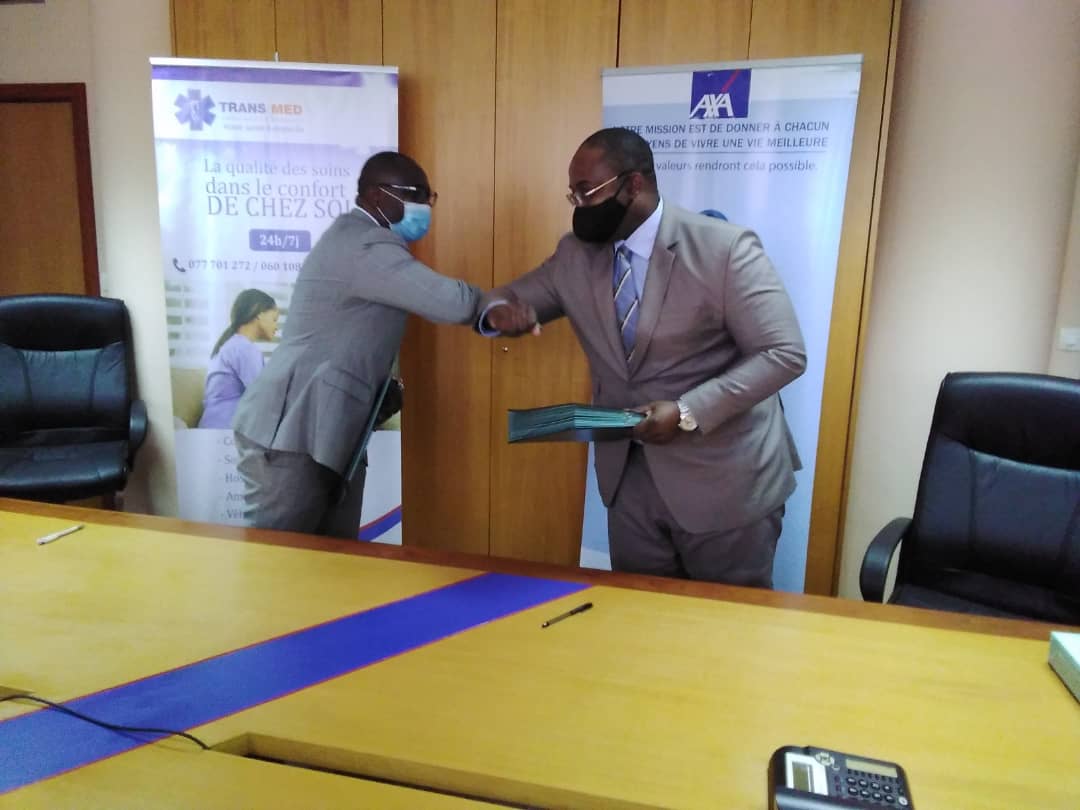 La cérémonie qui unit le groupe d’assurance Axa et la structure sanitaire TransMed s’est déroulée ce mercredi 8 août dernier à Libreville. La signature du partenariat entre Théophile Jocelyn Mboro Assogho et Cyrille Endama, respectivement Directeur Général Axa Gabon et Président-Directeur-Général de TransMed s’inscrit dans le cadre de l’innovation afin de faire bénéficier aux assurés du groupe Axa, des soins médicaux de qualité à domicile. Le respect des mesures barrières étaient au rendez-vous. La crise sanitaire à Coronavirus oblige.