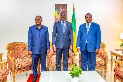 Son Excellence Brice Clotaire Oligui Nguema, Président de la République, Chef de l’État, Chef du Gouvernement, a reçu ce jour, au Palais Rénovation, Leurs Excellences Umaro (...)