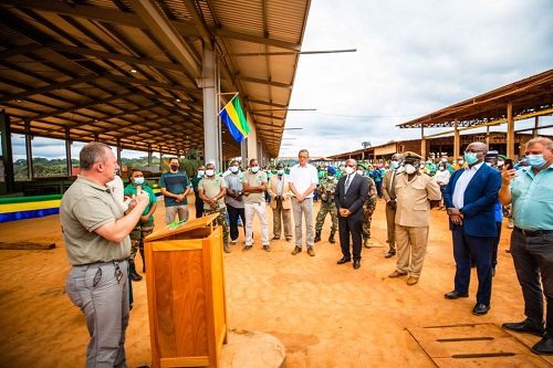 A Bambidi, première étape de la tournée, le Prof. Lee White, accompagné du gouverneur de la province de l’Ogooué-Lolo, M. Jean Bosco Assingabagni, du directeur général de la société Precious Wood CEB, M. Frederic Ober, et du directeur général de la Banque africaine de développement (BAD) au Gabon, M. Robert Masumbuko, a inauguré la nouvelle usine de transformation de bois Azobé de la société forestière Precious Wood CEB.