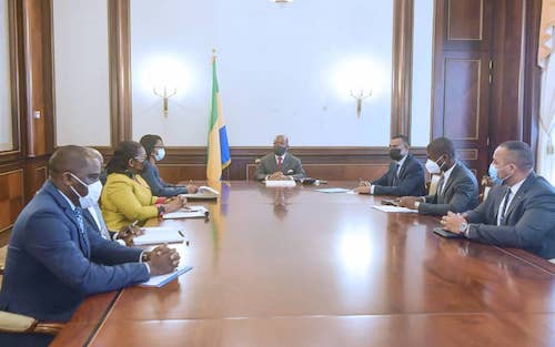 Libreville – le 10 janvier 2022-Le Président de la République, Son Excellence Ali Bongo Ondimba, a reçu ce jour en audience, le Premier ministre, chef du gouvernement madame Rose Christiane Ossouka Raponda qu’accompagnaient madame Nicole Janine Lydie Roboty épouse Mbou, ministre de L’Economie et de la Relance et une délégation de la Direction Générale de la Comptabilité Publique et du Trésor.