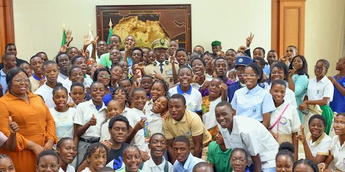 Outre les prestations culturelles et les allocutions de circonstance, cette édition particulière a été ponctuée par une visite guidée du Palais Présidentiel par les lauréats. Visite inédite conduite par le Secrétaire Général de la Présidence de la République qui a suscité la joie des élèves, et au cours de laquelle le Président de la République a brièvement échangé avec ses jeunes compatriotes sur l’activité présidentielle au quotidien ainsi que tout le processus de transition et le retour à l’ordre constitutionnel.