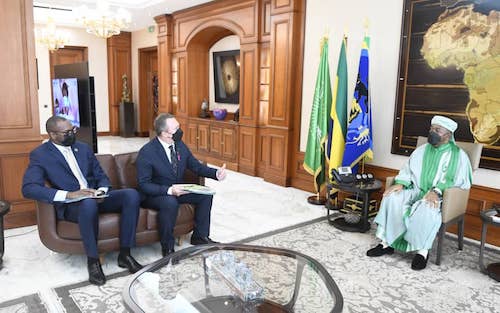 Libreville – le 08 Octobre 2021 -Le Président de la République, Son Excellence Ali Bongo Ondimba s’est entretenu ce jour avec le ministre des Eaux et Forêts, de la Mer, de l’Environnement chargé du Plan Climat et du Plan d’Affectation des Terres, le Professeur Lee White qu’accompagnait le Secrétaire Permanent du Conseil National Climat Monsieur Tanguy Gahouma Bekalé.