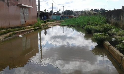 Ici,l’asphalte a fait place à un lit de rivière.Les habitants alentours ne peuvent malheureusement plus passer avec leurs véhicules."C’est difficile pour nous qui avons des voitures et ne pouvons plus les emmener dans nos portails. Nous laissons nos voitures très loin de nos maisons.Nous les confions aux gardiens. IL faut payer chaque fois. La voie est obstruée par cette marre d’eau.Cette voie secondaire permettait de désengorger les embouteillages qui sont légions dans notre capitale.C’est vraiment embêtant",confie un habitant.