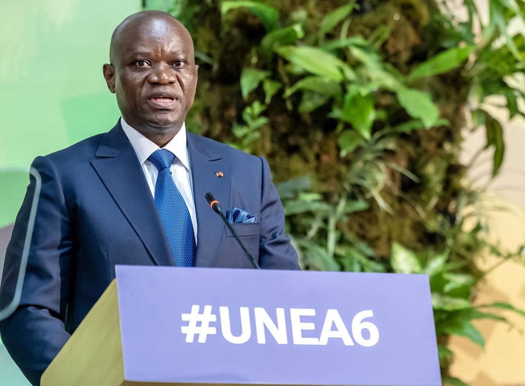Nicaise Moulombi, membre du bureau du Conseil économique social et environnemental, prend part à la sixième session de l’Assemblée des Nations Unies pour l’environnement (...)