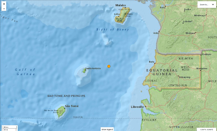 Libreville, le 19 décembre 2019 – Ce jeudi à 16h25, un séisme dont l’épicentre est situé à 90 kilomètres de Santo António (Sao Tomé-et-Principe) est survenu à 204 kilomètres de Libreville.
