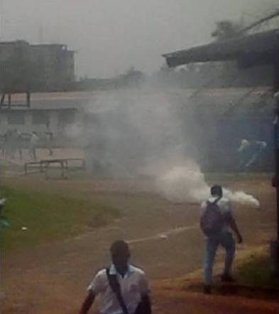 C’est lundi ! Les policiers errent les lieux. Les élèves, comme à leur habitude, regagnent leurs salles de classe respectives. Les premiers cours de la journée sont dispensés. Il sonne 9H15, la récréation, quelques élèves tentent d’aller rencontrer les membres de l’administration. Surpris, les élèves constatent de plus en plus la présence des hommes en treillis au sein de l’établissement. La tension commence à monter entre les deux parties. Intimidation, gaz lacrymogènes, violences physiques sont entre autres moyens employés par les forces de l’ordre.