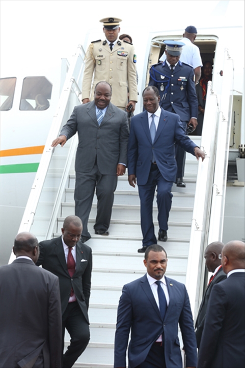 Arrivée des Présidents Ali BONGO ONDIMBA et Alassane OUATTARA à Abidjan