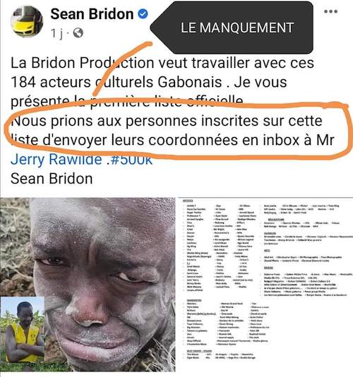 Il faut déjà reconnaître que Sean Bridon est un monsieur intelligent. Du peu que je crois savoir de lui, il aurait fait des études de marketing. Si c’est bien le cas, il n’est pas utile pour lui de brandir des diplômes car ses actes plaident en sa faveur. Avec plus de 20 millions de followers sur Facebook et des productions vidéos dont le génie réside dans l’expression muette - langage ouvert au Monde entier et qui, d’ailleurs, fait le succès planétaire du Tiktokeur Khaby Lame -, on voit déjà que son ambition à la conquête du Monde va bien au-delà des seules frontières gabonaises et africaines. Pour tout ceci, je suis admiratif et lui souhaite plein succès.
