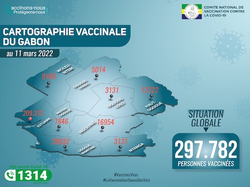 En ce qui concerne la vaccination, 93 sites sont ouverts dans les provinces de l’Estuaire, de l’Ogooué-maritime, du Haut-Ogooué, de l’Ogooué-Lolo, de la Nyanga, de la Ngounié, du Moyen- Ogooué, de l’Ogooué-Ivindo et du Woleu-Ntem, parmi lesquels 55 sites fixes et 38 sites en stratégie mobile dont 13 au sein des entreprises privées et 25 dans les administrations publiques.