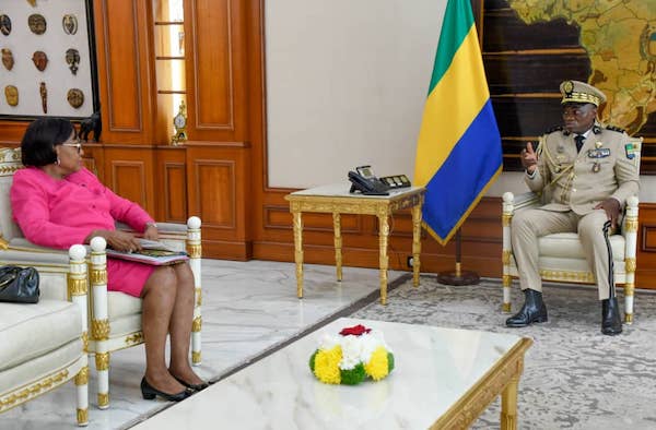 Libreville, le 21 Septembre 2023-Le Général Brice Clotaire Oligui Nguema, Président de la Transition, Chef de l’ Etat a reçu ce jour en audience madame Paulette Missambo, Président du Sénat.