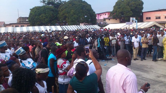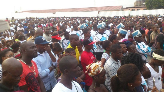 C’est une déclaration d’amour ou presque que Guy NZOUBA-NDAMA a faite au peuple Gabonais ce dimanche 12 juin 2016.L’esplanade du Lycée Ntchoréré a servi de cadre au meeting et a presque refusé du monde. Le candidat déclaré à l’élection présidentielle d’août 2016 et les siens ont animé un meeting pour appeler les Gabonais à prendre leur responsabilité. La responsabilité qui doit conduire le pays à l’alternance au sommet de l’État. Aussi, a t-il salué la détermination des Magistrats qui ont dit non à l’injustice et aux nominations qui n’honorent pas cette noble corporation.