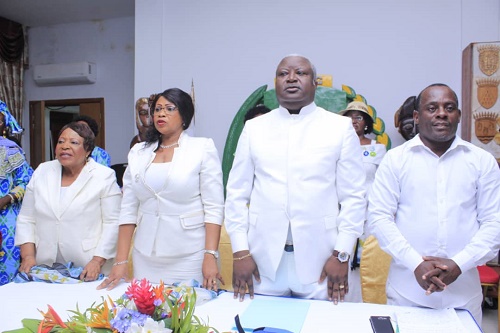 Madeleine Berre, ministre Gabonaise de la Fonction publique, de l’Innovation, du Service public et du Travail, a tenu une réunion avec les partenaires sociaux en vue de (...)