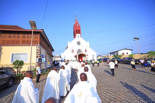 Au titre des temps forts de cette cérémonie de dédicace, l’on note plusieurs rites religieux circonstanciels tels que la procession de l’assemblée pour la bénédiction de la Chapelle rénovée, le rite d’ouverture des portes de l’église, la célébration liturgique, la procession d’une pierre d’autel apportée par la famille de Monseigneur Bessieux fondateur de ladite église, la bénédiction de l’autel avec le Saint- chrême ,et par dessus tout le symbole de la lumière de l’évangile sur la terre gabonaise et africaine.