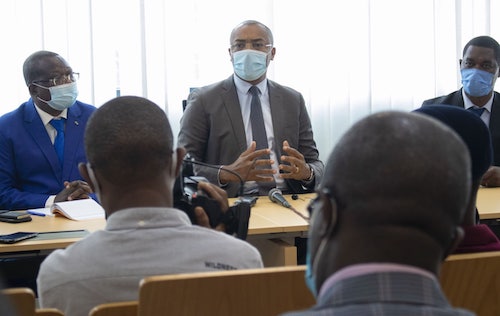 Libreville, le 26 août 2021 – Le Ministre de la Santé, Dr. Guy Patrick Obiang Ndong a présidé ce jour, au Centre hospitalier universitaire mère-enfant fondation Jeanne Ebori (CHUMEFJE), en présence des Secrétaires Généraux et du Directeur central des ressources humaines (DCRH) du Ministère, la commission de mutations et d’affectations des personnels. Prenaient également part à ces travaux, l’ensemble des directeurs régionaux de santé, des responsables et gestionnaires des ressources humaines des Structures.