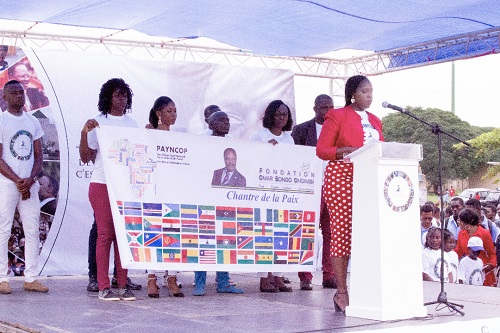 Pour Jerry Bibang, le Coordonateur National, "la culture de la paix désigne un ensemble de valeurs, d’attitudes, de traditions, de comportements et modes de vie fondés sur le respect de la vie et le rejet de la violence et la promotion de la pratique de la non-violence par l’éducation, le dialogue et la coopération » (...) Tout au long de sa vie, Omar Bongo Ondimba a été un véritable ambassadeur de ces valeurs, attitudes et comportements. Il a toujours prôné le dialogue, la tolérance, rejetant ainsi la violence. Aujourd’hui, ces valeurs sont menacées dans notre pays et c’est pourquoi nous devons tous AGIR, a-t-il déclaré.